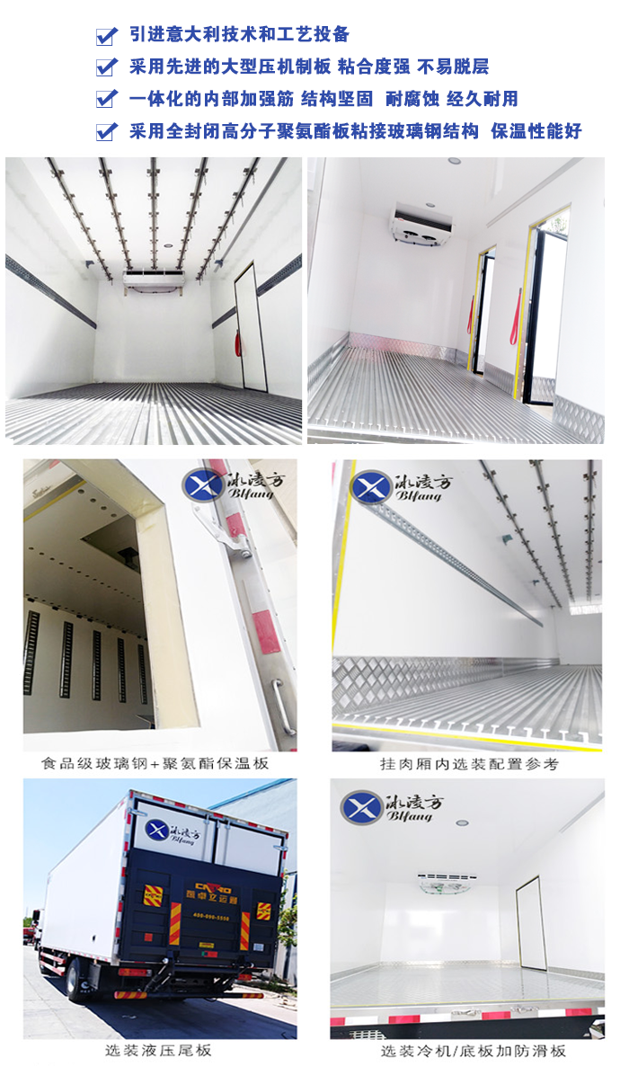 冰凌方冷藏車采用全封閉聚氨酯板塊粘接玻璃鋼結(jié)構(gòu),廂體比同類產(chǎn)品輕,能有效的降低運(yùn)輸成本。廂體采用高分子聚酯材料熱壓成型,采用全封閉結(jié)構(gòu)。一體化的內(nèi)部加強(qiáng)筋,極大的增加了廂板強(qiáng)度,高強(qiáng)度、高密封性膠合劑,形成一個(gè)整體,耐腐蝕性好。采用“三明治”壓法,保證廂板內(nèi)無空氣間隙,廂體無金屬冷橋,導(dǎo)熱率低。